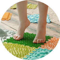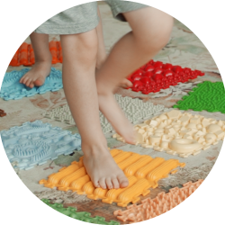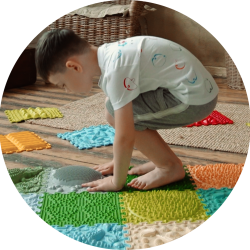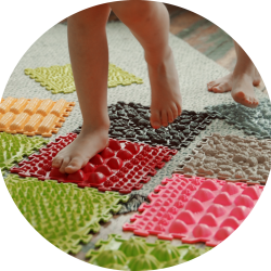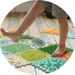 Various textures and various hardness of ORTONATURE mats allow for creation of countless combinations for reaching various effects of massage, as well as there are specially developed mats for children with valgoid/varus orientation of feet, club-foot and flat foot issues.